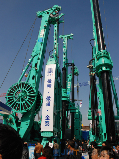 2010年11月23日,亞洲工程機械與建材機械行業最具權威性的專業博覽會,第五屆中國國際工程機械、建材機械、工程車輛及設備博覽會(bauma China 2010)于上海新國際博覽中心隆重開幕。上海金泰工程機械有限公司作為地下施工設備的知名生產商,在位于室外 的展臺上向全球用戶展示了包括SG60液壓連續墻抓斗、SG46液壓連續墻抓斗、C80液壓銑削攪拌鉆機、SH25C多功能鉆機、SD28多功能鉆機、SH36多功能鉆機、SD20A多功能鉆機、ZKD85/M85多軸孔鉆機等多款經典設備。