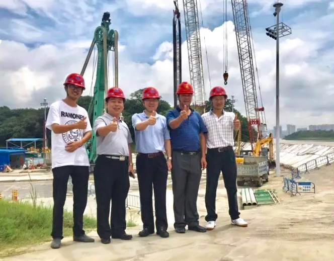 日前,工程承建單位廣西路橋集團(tuán)、施工單位廣東深大基礎(chǔ)公司以及設(shè)備供商上海金泰三方領(lǐng)導(dǎo)親臨施工現(xiàn)場(chǎng)視察。廣東深大基礎(chǔ)公司的李總對(duì)金泰SX40雙輪銑的穩(wěn)定性和施工效率給予了高度的評(píng)價(jià):“金泰的雙輪銑為我們的施工進(jìn)度提供了有力的保障,從5月初正式開(kāi)工至今,設(shè)備已運(yùn)行了近1600小時(shí),沒(méi)有發(fā)生任何故障,至今已順利完成了80%的工程,而且維護(hù)成本相當(dāng)?shù)停鹛┑碾p輪銑高效穩(wěn)定,能力強(qiáng)勁,不負(fù)使命!”