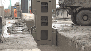 該地段地層條件如下,地面以下0~26米為土層、26~48米為細砂層、48~50米為鐵板沙層、50~52米為卵石層、52~65米卵石夾砂層、65~70米為砂層、70~76米為巖層。此項目地下連續墻深度為76米、厚為1.2米。據現場工作人員反饋,9月10日SG90第一次試抓直接抓到72米入巖2米,耗時17小時,之后在不同工況下,深度為50米左右的槽平均耗時5.5小時完成,其中一鍵抓槽功能與手持操作效率相持平,解放雙手的同時保證成墻質量。目前該設備與金泰雙輪銑“抓銑結合”已完成11幅厚為1.2米、長為7.2米的地連墻,較同場設備整體效率提升將近30%左右。同時該設備已運行1000多小時,始終表現穩定可靠、特別是入巖能力強,提升和下放速度快,施工效率高,為期參加施工的項目提供了強有力的保障。