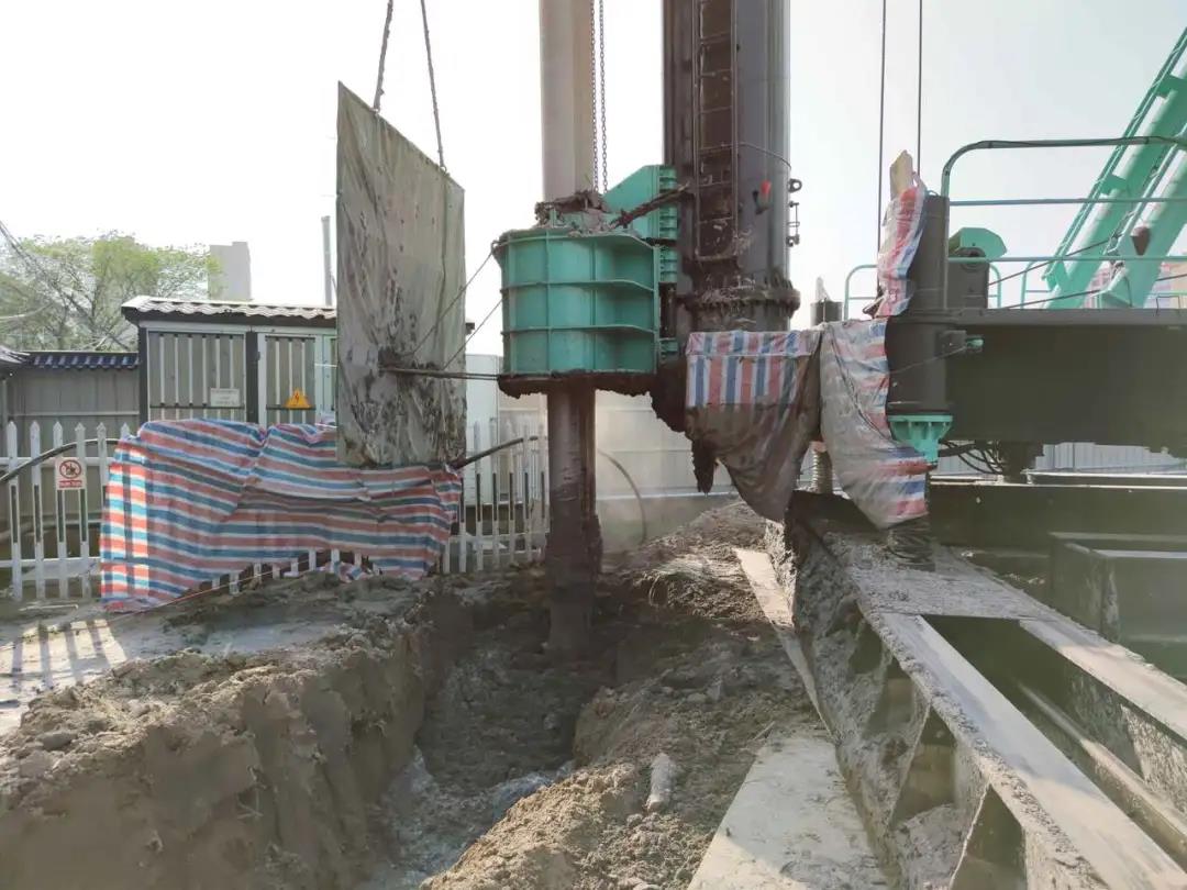 該項目工程總量約3萬方,槽寬850mm,墻深23m。據現場工作人員反饋,金泰ZKD85-3G是目前多軸攪拌鉆機金字塔里頂尖的產品。當前施工鉆進轉速在35~40r/min時,鉆進速度為1.8~2m/min、提升轉速在40~45r/min時,提鉆速度為2~2.5m/min.目前,日班截止至晚上9點,每天平均可完成31幅槽,領先同場設備11幅槽左右。