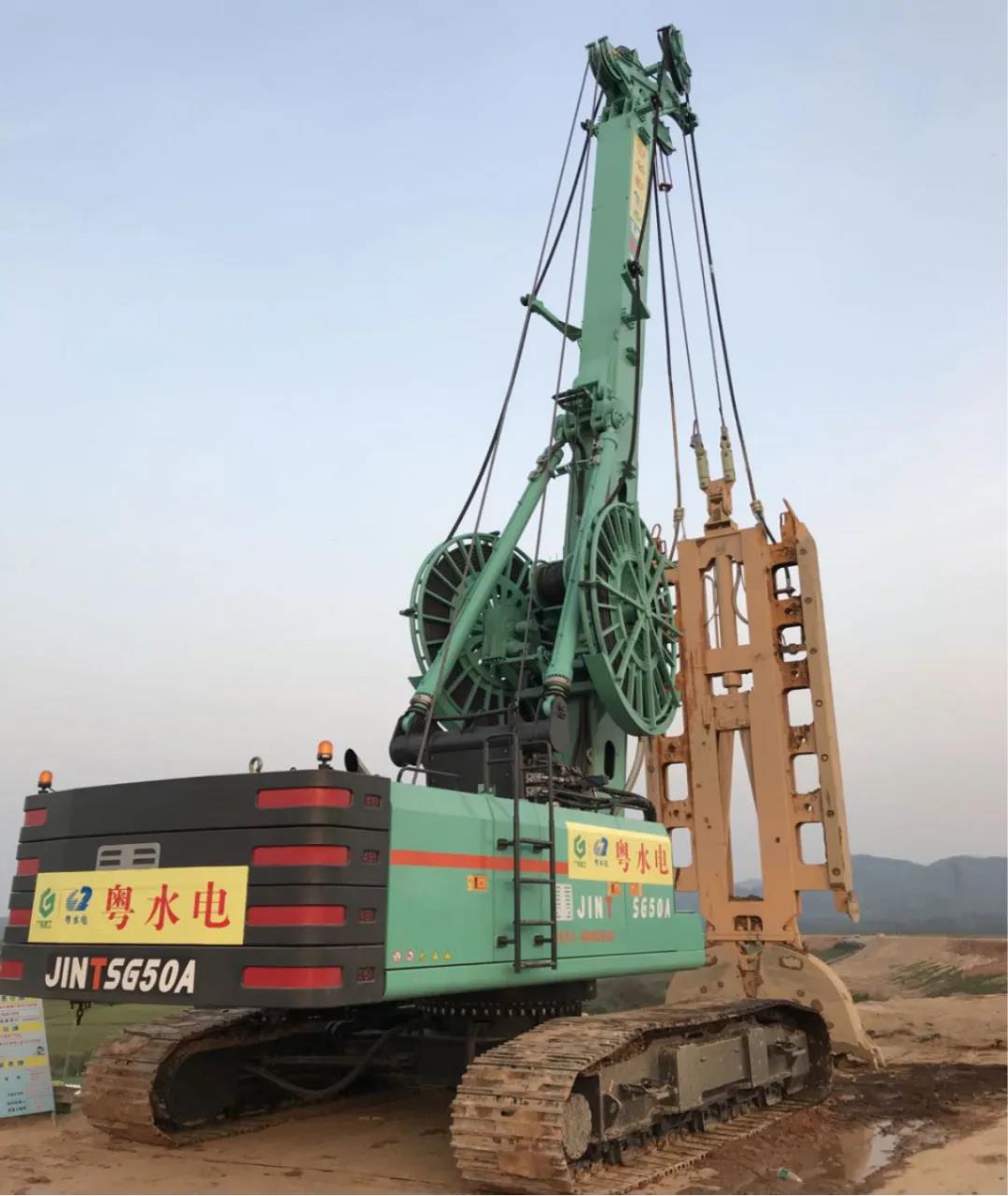 我司選定金泰SG46A和SG50A液壓連續墻抓斗,配合輕型薄壁抓斗和推板糾偏系統直接進行砼防滲墻施工,其目的為減小施工中震動,保證垂直度,大大提高了成墻效率和質量,同時,還對泥漿進行特殊處理,從而解決砂卵礫石層容易塌槽的技術問題?,F統計平均40分鐘到1小時可完成一幅槽,施工效率已大大超過施工前預期。“