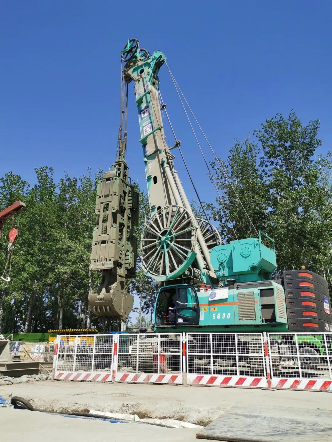 該項(xiàng)目南起京哈高速立交,北至潞苑北大街,全長約16公里。從4月27日開始,金泰SG70、SG90地連墻抓斗進(jìn)行首幅地連墻開槽施工。