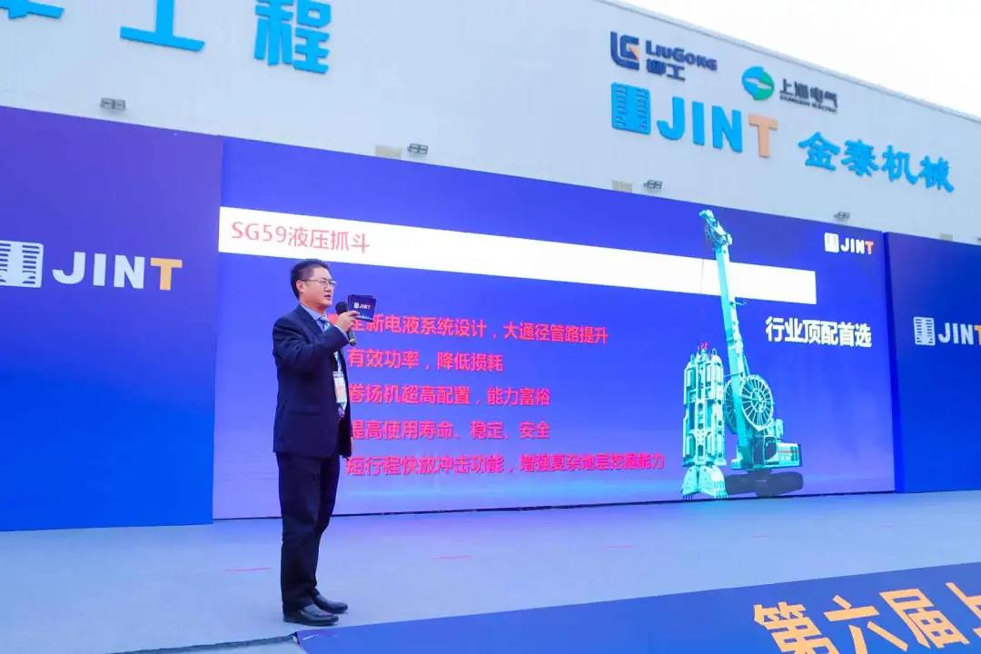 隨著國(guó)家基礎(chǔ)建設(shè)的縱深發(fā)展,為解決深大地下空間開(kāi)發(fā)面臨的深層地下水控制問(wèn)題,2014金泰成功開(kāi)發(fā)了SC系列雙輪攪拌鉆機(jī),成為解決復(fù)雜地質(zhì)和城市敏感環(huán)境中超深等厚水泥土攪拌墻的關(guān)鍵技術(shù),由此在2017年榮獲“國(guó)家科技進(jìn)步二等獎(jiǎng),”成為又一個(gè)推動(dòng)國(guó)家基礎(chǔ)施工裝備升級(jí)的典范。本屆展示會(huì)金泰發(fā)布了三款抓斗新產(chǎn)品:極具性價(jià)比優(yōu)勢(shì)D系列代表機(jī)型SG50D、體現(xiàn)專業(yè)與智慧的中型王牌產(chǎn)品SG59、被譽(yù)為“能效之王”超重型抓斗SG90。