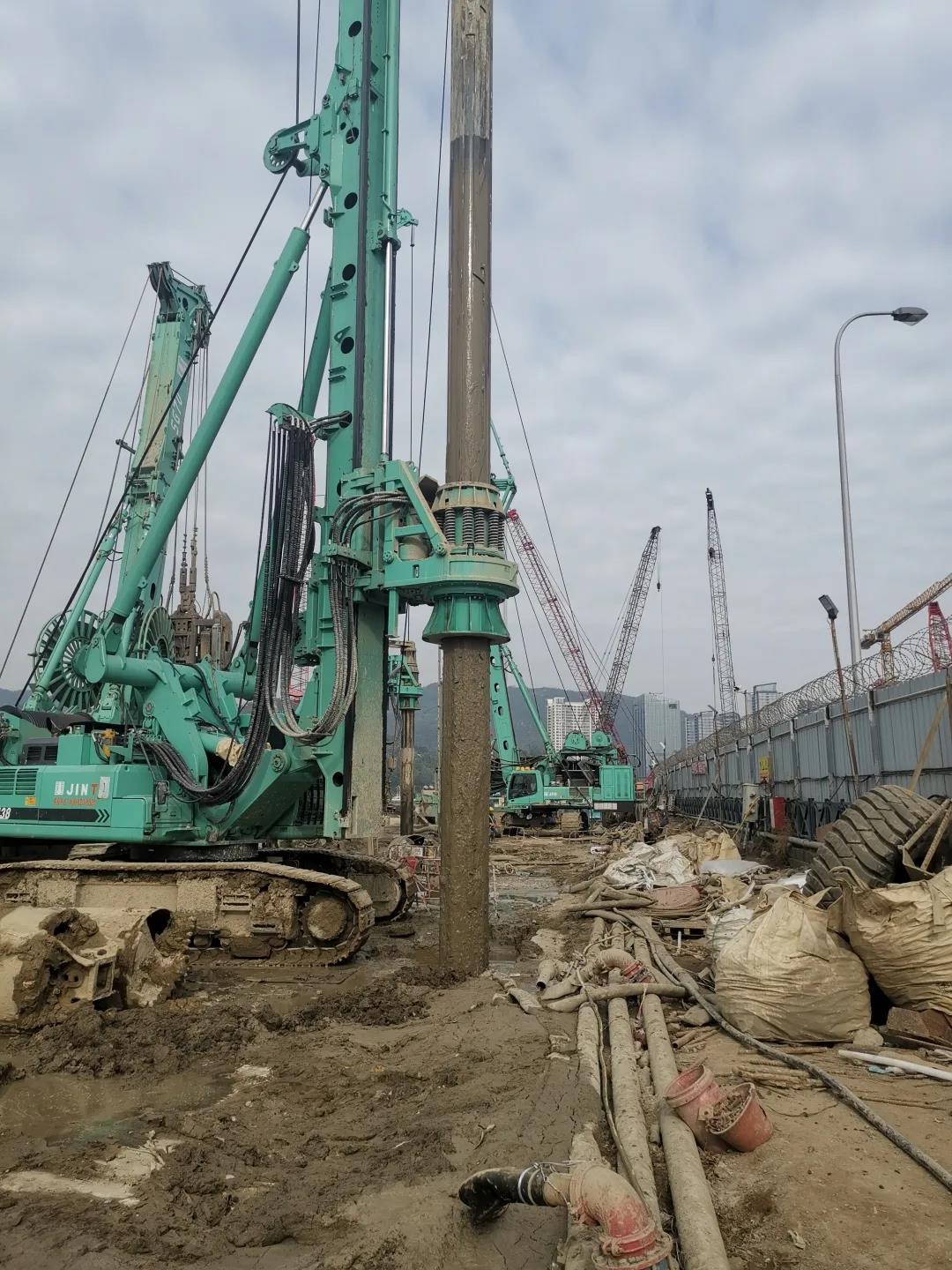 另外,值得一提的是金泰SH38旋挖鉆機雖在工程中起著輔助施工作用,但它在提升地連墻整體施工效率中起到了關鍵性的作用,效率提升1倍,平均每天打1根半。