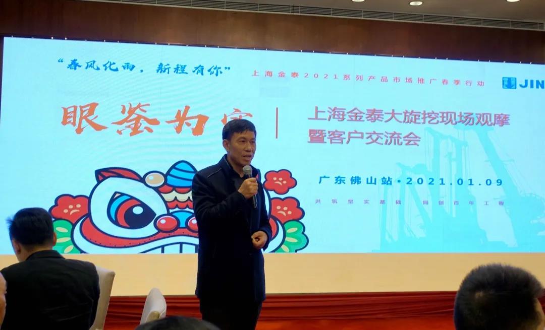 南國春來早,萬物競芳菲,1月9日下午,一場別開生面的上海金泰大旋挖現場觀摩暨客戶交流會在廣東佛山市順德區舉辦,以此拉開了上海金泰系列產品2021年春季市場推廣大幕。