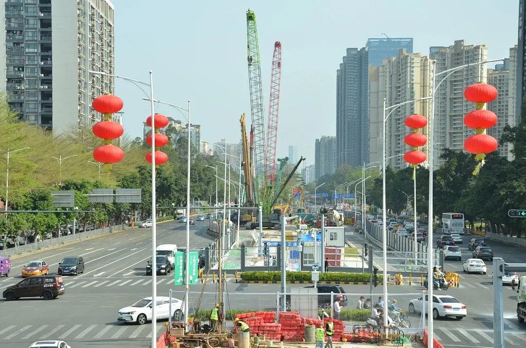 小編在車流如織的寶安大道上看到,僅有3車道,如此狹窄的施工作業面上,將建起一座粵港澳大灣區城際鐵路的三線換乘車站,無異于“螺螄殼里做道場”,難上加難。但是,項目的業主單位和參建者克服種種困難,在盡量不影響交通的情況下快馬加鞭搞建設。