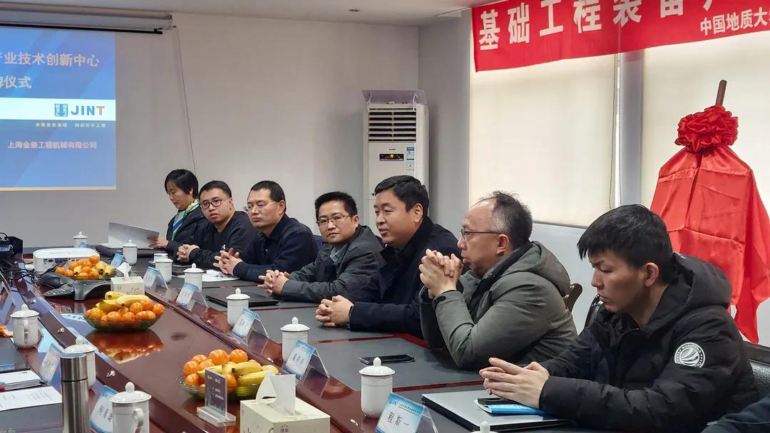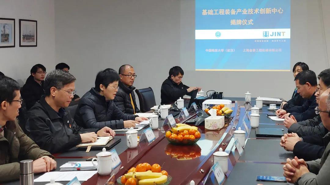 新年伊始,由中國地質(zhì)大學(xué)(武漢)與上海金泰工程機(jī)械有限公司共同創(chuàng)建的“基礎(chǔ)工程裝備產(chǎn)業(yè)技術(shù)創(chuàng)新中心”在金泰本部正式揭牌成立。中國地質(zhì)大學(xué)(武漢)科學(xué)技術(shù)發(fā)展院副院長吳春明先生和上海金泰工程機(jī)械有限公司黨委書記陳雪英女士分別代表校企雙方致詞,金泰公司總經(jīng)理黎隸萬先生和中國地大(武漢)科學(xué)技術(shù)發(fā)展院副院長吳春明先生為“中心”共同揭牌。
