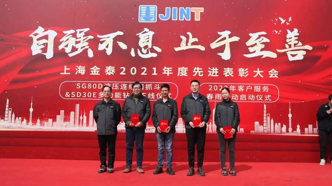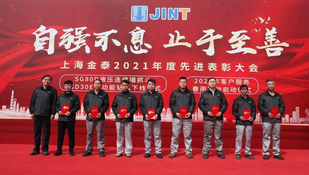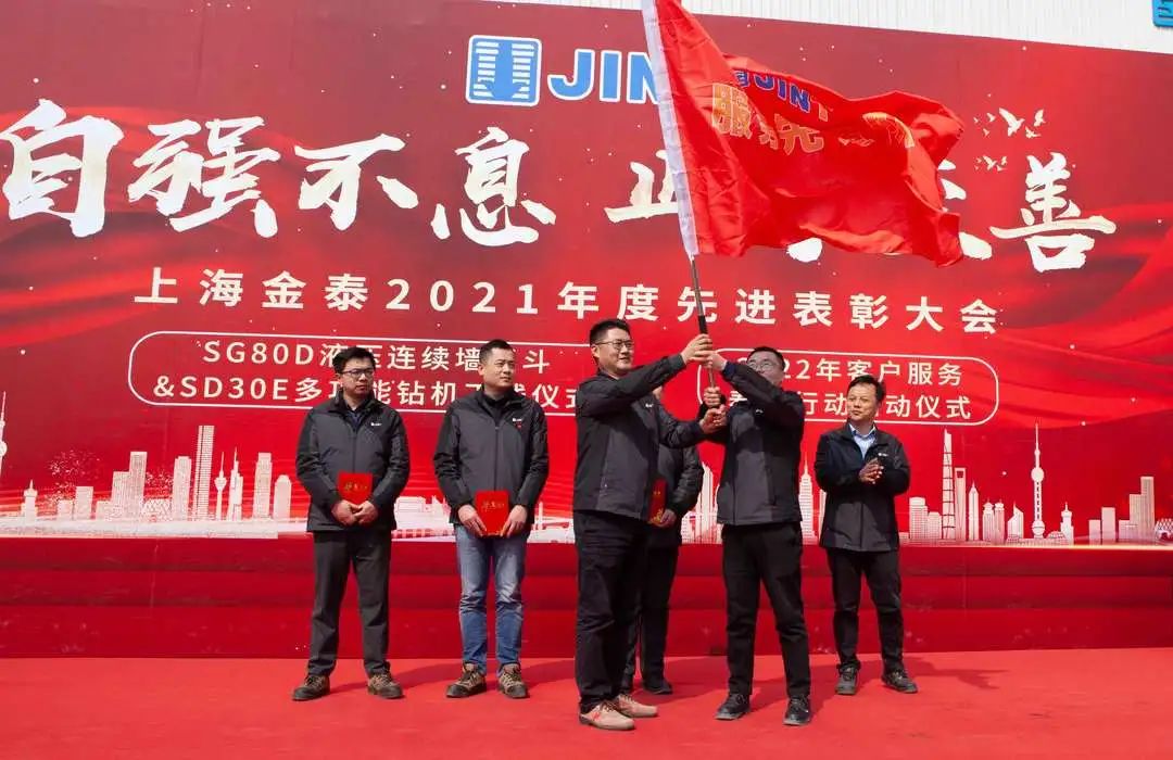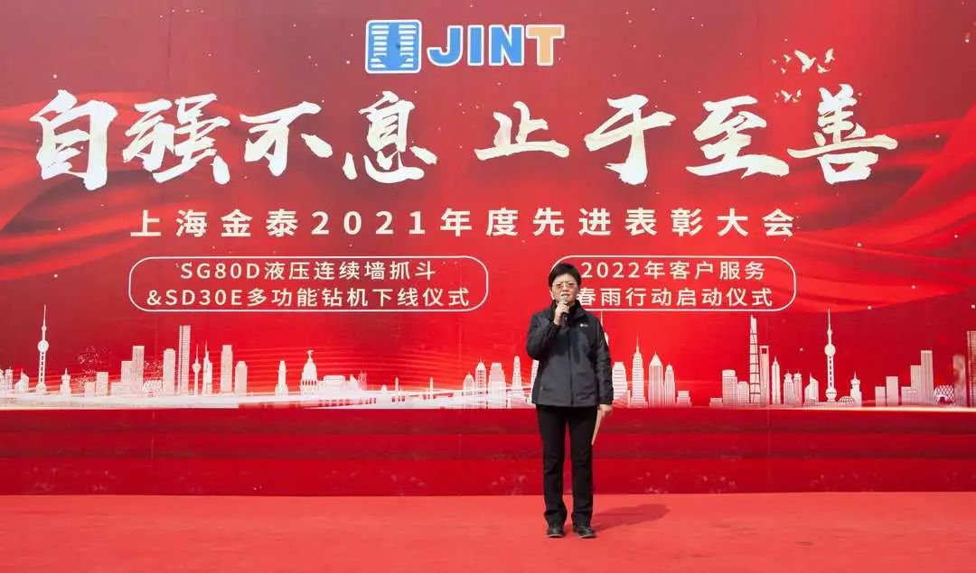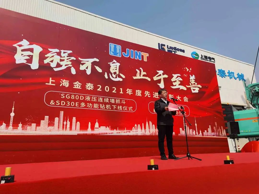 “下線!”“出發!”“勵志!” 3月2日,上海金泰SG80D液壓連續墻抓斗與SD30E多功能鉆機下線、2022年客戶服務春雨行動啟動儀式暨2021年度公司總結表彰大會隆重舉行。