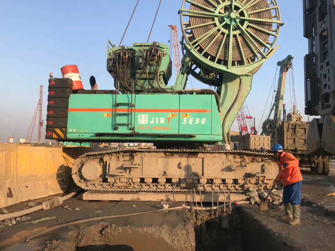 終于完成了。耗時3年半,金泰4臺雙輪銑和20臺地連墻液壓抓斗先后在南京江北新區地下空間工程中分別參與8個地質最為復雜的區工段,承擔主要施工任務。在高峰期間金泰三大主力產品旋挖、抓斗、雙輪銑共有20多臺金泰設備同時進行施工,是項目的“絕對主力軍設備”。