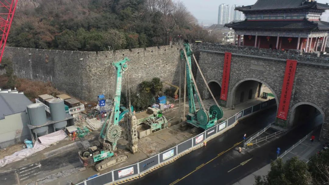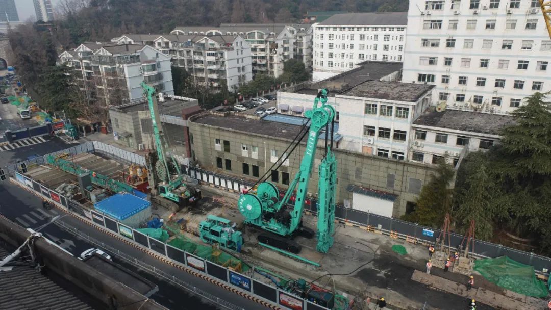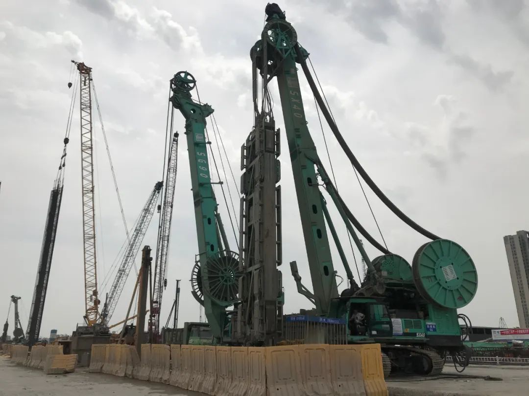 從中不難看出,金泰國地連墻產品從開創至今,設備產品力和市場占有率一直保持在國內行業前沿,施工紀錄也一路保持領先。目前,金泰樁工設備在各省、市重點項目,國家重點工程中表現活躍,建設正酣,其南京市鼓樓區最為典型,一條建寧路上,每相間500米就有金泰設備的身影在施工。
