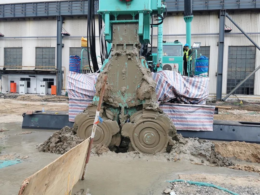 日前 ,被譽為“華北第一坑”的通裕重工股份有限公司鍛模車間基坑支護及地下水控制項目已進入施工尾聲,該工程已在國慶假期間完成所有等厚水泥土攪拌墻施工,所用設(shè)備為金泰結(jié)合了液壓銑槽機設(shè)備技術(shù)和深層攪拌技術(shù)的SC55雙輪攪拌鉆機。