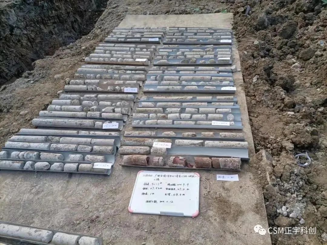 武漢正宇科創巖土工程有限公司專注于超深水泥土止水帷幕施工及工法推廣,是上海金泰工程機械有限公司的戰略合作伙伴單位之一,同時也是上海金泰SMC工法技術與裝備堅定的實踐者和支持者!回顧項目試成墻階段,正宇科創會同上海金泰多次召開內部討論會,制定了詳盡可行的試成墻施工方案,嚴格按方案實行,施工3幅試成墻(不同的參數組合),成墻14天的抽芯檢測結果顯示,墻身完整性、強度和入巖深度均滿足設計要求,獲得項目參建各方的認可,順利進入正式施工階段。