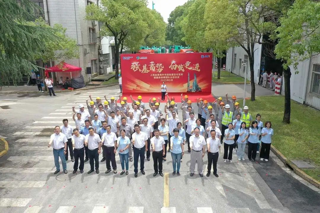 6月20日上午11時,“2023上海金泰海外市場批量交付發車暨服務保障團隊出征儀式”于上海安亭洛浦路45號金泰本部隆重舉行。一輛輛滿載主機、附件和鉆具以及現場保障用品備件的卡車從金泰本部駛向港口,奔赴中東、北美、澳洲、南亞、俄羅斯等國家和地區,為上半年的收官工作再敲重錘。上海金泰總經理黎隸萬、黨委書記陳雪英、董事副總經理徐峰等公司主要領導以及生產、研發、營銷等各部門代表共同參加見證。