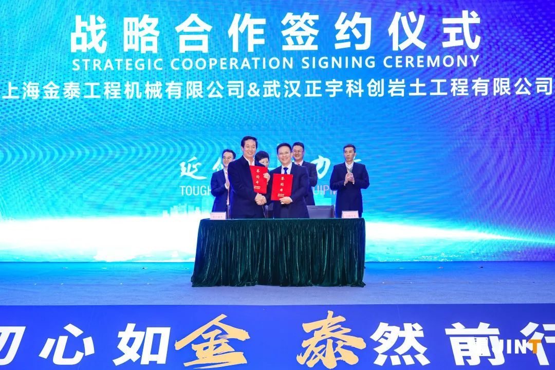 下午在金泰工廠舉辦了隆重的新產(chǎn)品發(fā)布活動(dòng),公司董事、副總經(jīng)理徐峰集中介紹了SX150泵舉雙輪銑、SX50F氣舉卷管雙輪銑、SG80E電動(dòng)抓斗、SH42F-SC40液壓銑削攪拌鉆機(jī)、SH58F多功能鉆機(jī)等5款2024年度新產(chǎn)品;在現(xiàn)場(chǎng)嘉賓的共同見證中,黎隸萬(wàn)和徐峰分別分別簽署了戰(zhàn)略合作協(xié)議和產(chǎn)品交付協(xié)議。最后,廣西柳工機(jī)械股份有限公司副總裁、金泰公司董事長(zhǎng)袁世國(guó)帶領(lǐng)金泰公司經(jīng)營(yíng)團(tuán)隊(duì)與客戶代表共同啟動(dòng)了新品發(fā)布道具,將下午的活動(dòng)推向高潮。