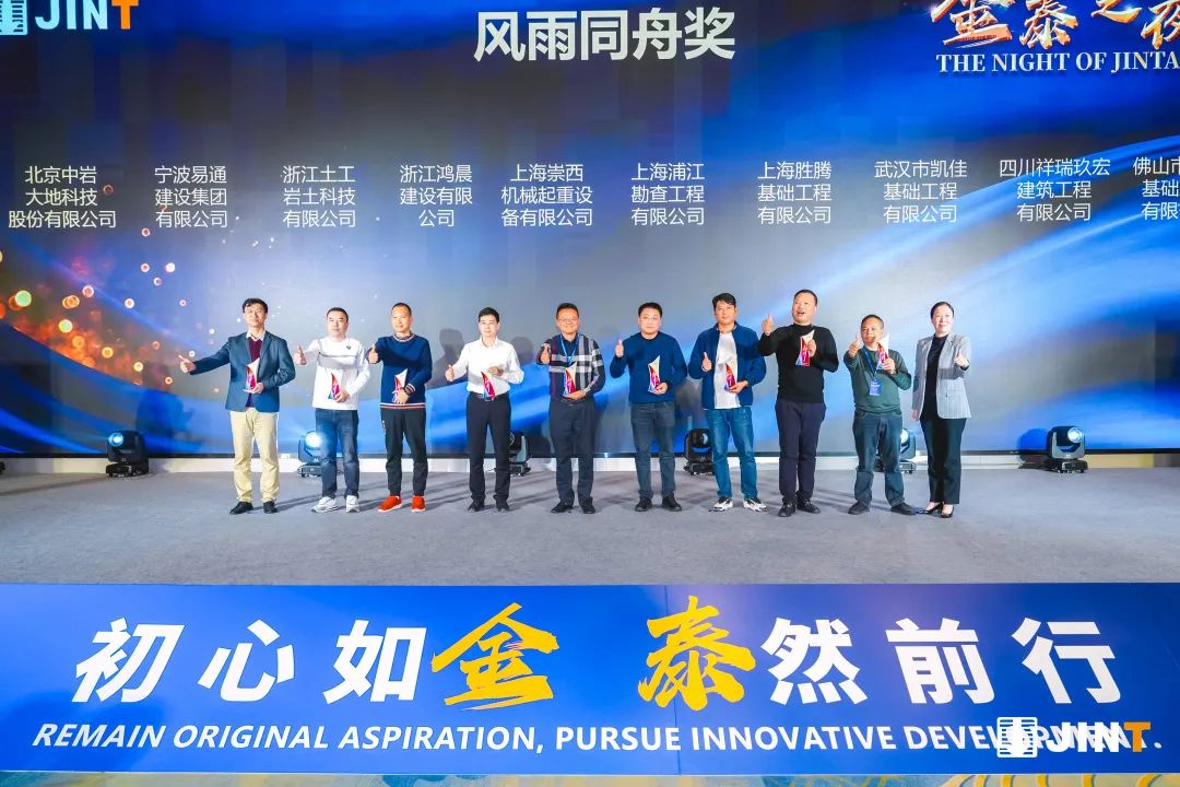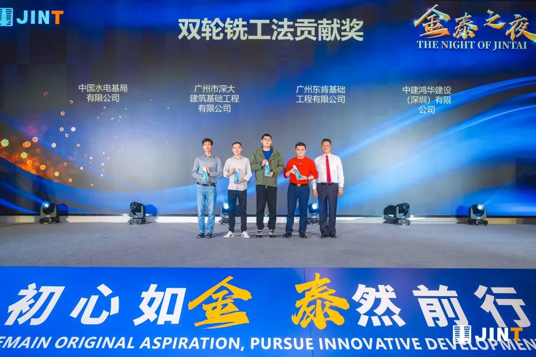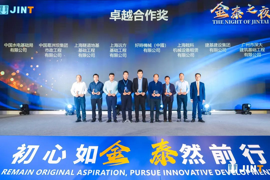 在“金泰之夜”答謝晚宴開始前,袁世國(guó)董事長(zhǎng)、丁靜羽副董事長(zhǎng)、金泰經(jīng)營(yíng)團(tuán)隊(duì)為與金泰保持長(zhǎng)期良好合作,對(duì)金泰產(chǎn)品和技術(shù)進(jìn)步起到重要推動(dòng)作用的行業(yè)客戶、專業(yè)客戶頒發(fā)了卓越合作獎(jiǎng)、風(fēng)雨同舟獎(jiǎng)、抓斗合作獎(jiǎng)、旋挖合作獎(jiǎng)、CSM工法貢獻(xiàn)獎(jiǎng)、雙輪銑貢獻(xiàn)獎(jiǎng)等6大類共41個(gè)獎(jiǎng)項(xiàng)。