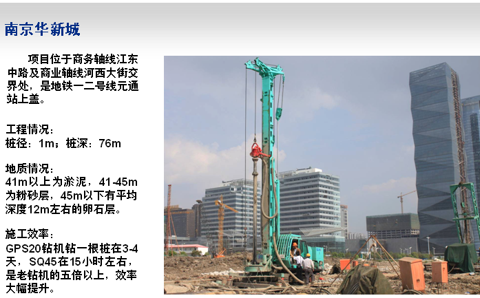 SQ45全液壓循環(huán)鉆機(jī)可實(shí)現(xiàn)正循環(huán)、泥漿反循環(huán)以及氣舉反循環(huán)等各種循環(huán)方式的樁基礎(chǔ)施工,對(duì)傳統(tǒng)工程鉆機(jī)的施工效率和操作模式實(shí)現(xiàn)重大突破。
