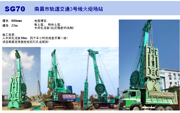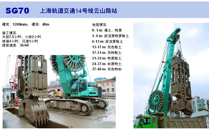 SG70 液壓連續墻抓斗選用進口康明斯QSM11 電噴渦輪增壓發動機(歐Ⅲ),動力強勁,低噪音,低排放,采用了可靠、穩定、高性能的品牌液壓元件;采用了雙卷揚工作,提升和下放更快,成槽效率明顯提高并改善了燃油經濟性;采用先進的可編程的測斜裝置,記錄并存儲抓斗的挖掘作業過程。成槽效率更快,深槽挖掘能力更大,更具節能高效環保功能,控制系統及穩定性方面進一步提升 。